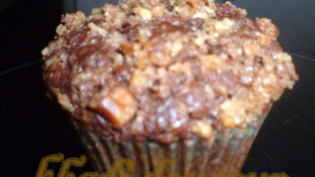 Beurrer les moules à muffins, répartir la pâte puis ajouter par dessus le streusel.