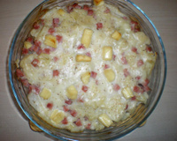 Incorporer dans la pâte les cubes de Vache qui rit.