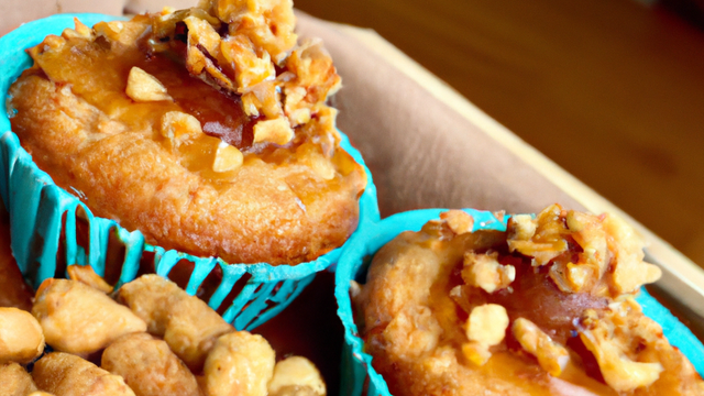 Répartir rapidement les cacahuètes sur les muffins avant que le caramel ne durcisse trop