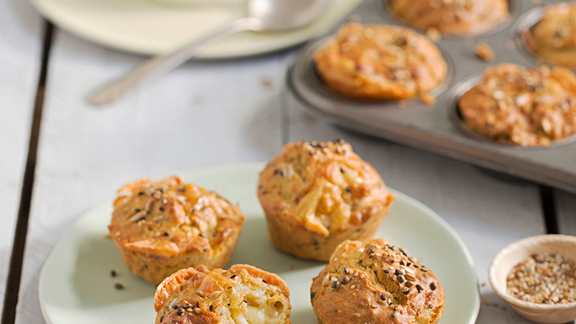 Huiler ou beurrer les alvéoles d’un moule à muffins. Répartir la pâte dans les empreintes et saupoudrer de quelques graines. Enfourner pour 25 minutes environ. Vérifier la cuisson en piquant les muffins avec la pointe d’un couteau : elle doit ressortir sèche.