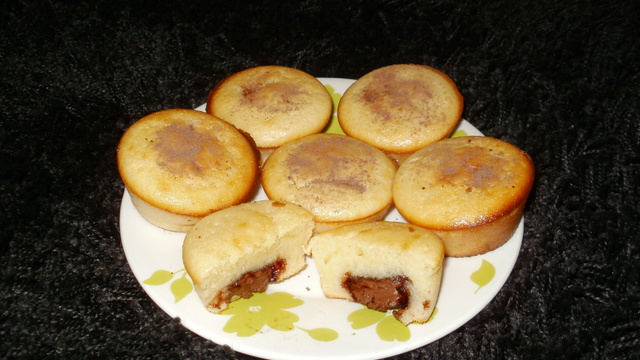 Remplir les cavités aux 2/3 et incorporer de grosses noisettes de Nutella dans chaque cavité. - 5