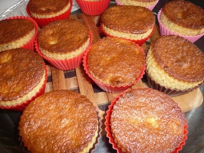 Mettre dans des moules à muffin graissés. Cuire à 180 C entre 20 à 25 minutes ou jusqu'à ce qu'un cure-dent en ressorte propre