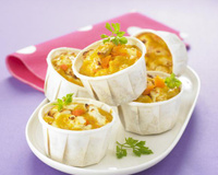 Au terme de la cuisson, sortir les muffins, laisser refroidir environ 5 minutes et démouler. Décorer les muffins avec une carotte en massepain.