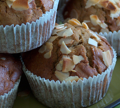 Répartissez la pâte dans les petits moules à muffins et déposez quelques amandes effilée au dessus.