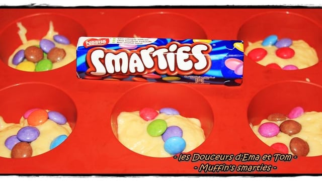 Remplir les moules aux tiers puis mettre environ 6 smarties.Recouvrir avec un peu de pâte.Enfourner à 180°c pendant 12 minutes pour des petits et 15 pour les gros.Vérifier la cuisson avec une pointe de couteau : celle-ci doit ressortir humide mais sans pâte.