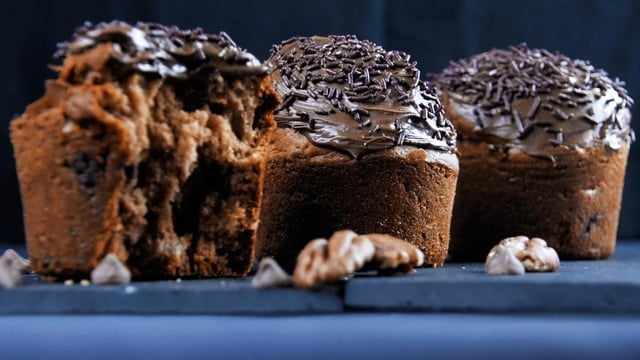 Décorez le dessus de vos muffins avec de la pâte à tartiner au chocolat, puis parsemez de vermicelles au chocolat.