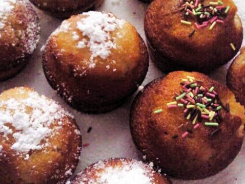 Muffins à base de banane au coeur de Nutella fondant saupoudré de noix de coco rapée...