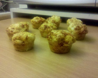Muffins aux chorizo agrémenter de morceaux de bûche de chèvre.