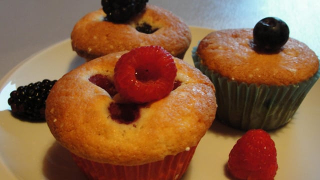 Si vos fruits sont trop acides, mettez un peu de confiture au milieu du muffin.