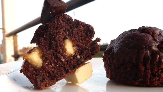 Verser le restant du mélange sec dans la préparation à base de bananes, remuer jusqu'à ce que la pâte soit bien homogène puis incorporer à l'aide d'une maryse la préparation à base de courgettes, remuer rapidement puis verser le tout dans les empreintes et enfourner pour une vingtaine de minute.