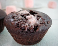Des muffins super gourmands et sucrés, grâce aux marshmallows qui fondent à l'intérieur et caramélisent le dessus. Ils sont délicieux tièdes, lorsque le chocolat est encore coulant.
