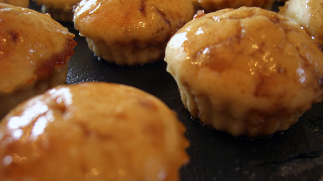 Préparez le glaçage : mélangez la sauce soja, le vinaigre balsamique et le miel puis faites bouillir pendant 5 minutes. Laquez les muffins avec cette sauce.