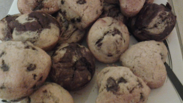 Muffins pépites de chocolat et amandes effilées.