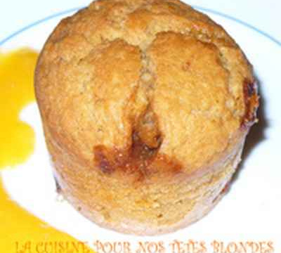 des muffins moelleux truffés de morceaux de caramels au beurre salé au bon goût d'enfance, accompagnés d'un coulis d'abricot acidulé