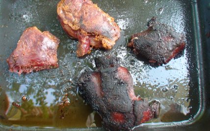 Sur la photo, on voit que les deux museaux laqués ont légèrement noirci, mais leur goût ne s'en ressentait pas. Si en cours de cuisson cela arrivait, baissez simplement de 20 degrés la température.