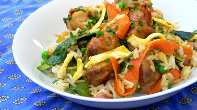 Il est important de bien rissoler le riz à la fin de la cuisson pour apporter une petite touche croustillante au plat. Cela marche bien avec un wok.