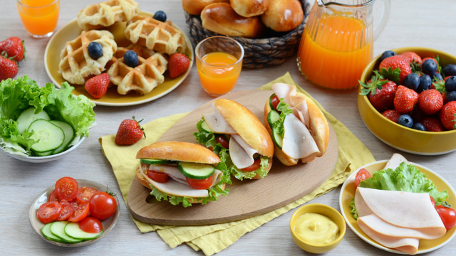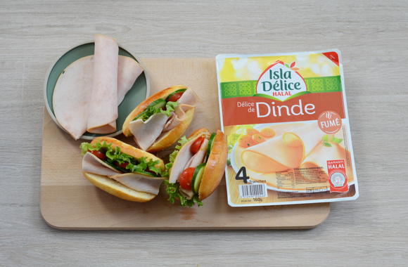 Des navettes fait maison garnies de délicieux Délice de dinde fumé et de crudités pour un brunch, un pique-nique ou une pause déjeuner entre collègue.