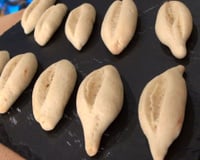 Découper la boule de pâte en petits morceaux de 10 g environ et former avec chacun un petit boudin dont les extrémités seront pincées et le centre fendu dans le sens de la longueur avec la lame d'un couteau.