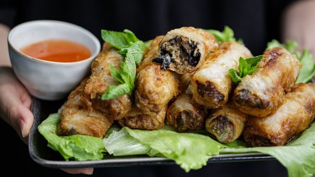 Faites frire les nems dans de l’huile chaude 5 minutes de chaque côté.