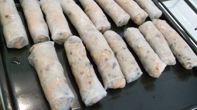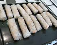 Plonger les nems un par un dans de l'huile de friture bien chaude. Les retirer dés qu'ils sont dorés.