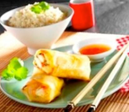 De délicieux nems au fromage, poulet et légumes. Un régal !