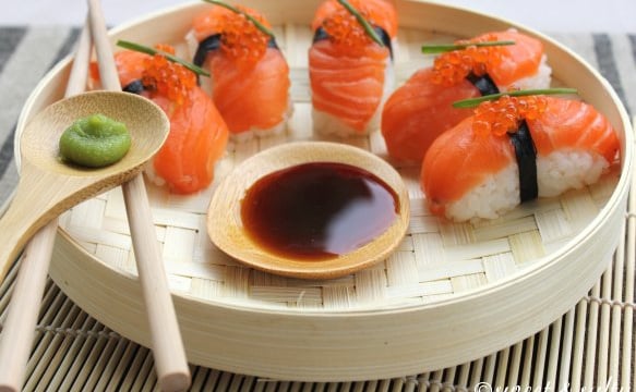 1 sushi = 1 c à s de riz + 1 tranche de poisson + 1 pointe de wazabi