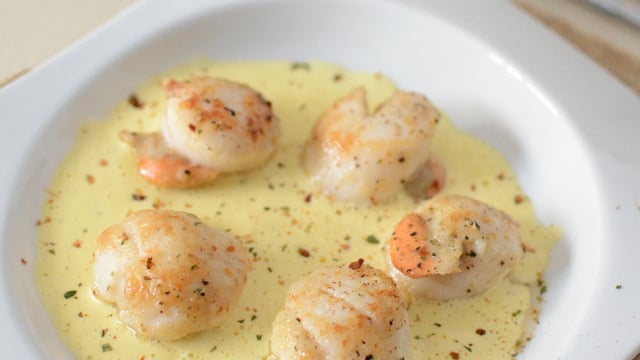 Au moment de servir, vous pouvez ajouter du persil frais sur les Saint-Jacques.