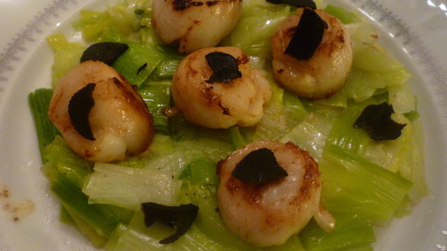Des noix de St Jacques au Noilly- Prat et truffes.