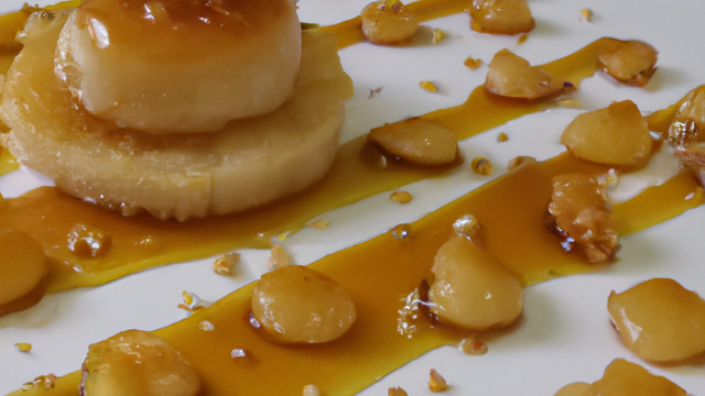 une recette de noix de saint Jacques avec une sauce au caramel classique où j'ai ajouté du jus de yuzu.