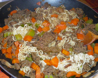 Réhydrater les nouilles 3 min dans de l'eau bouillante, égoutter.