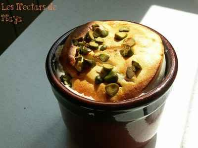 Mélanger tous le fromage blanc avec le sucre, la farine, l'arôme amande. Monter les blancs en neige avec le sel puis incorporer délicatement au mélange précédent. Ajouter les framboises et verser dans des petits moules beurrés et farinés. Parsemer d'éclats de pistaches et enfourner au bain marie à 200°C pour 30mn environ.