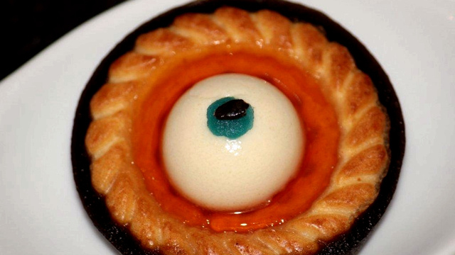 Remplissez les moules à muffins à moitié et déposez une tartelette. Réservez le temps de faire les yeux.