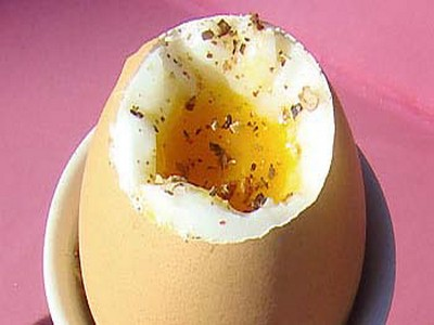 Mélanger à l'aide d'une petite cuillère pour que le poivre imprègne bien l'oeuf.