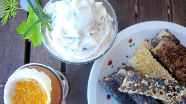 Passer les mouillettes dans l'œuf battu des 2 côtés afin de bien les imbiber et les rouler dans les graines de votre choix.