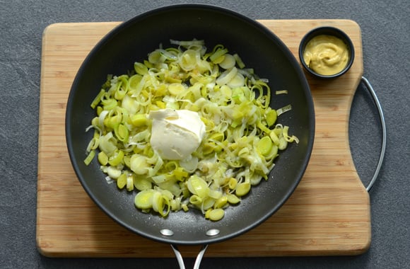 3Ajoutez la crème fraîche et la moutarde et laissez mijoter 5 minutes.