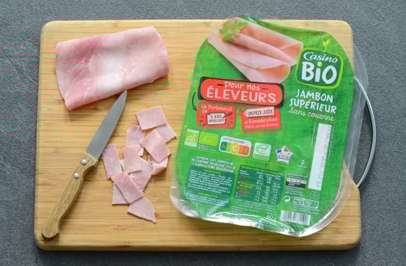 Coupez les tranches de jambon en morceaux.