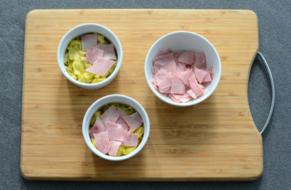 6Ajoutez des morceaux de jambon.