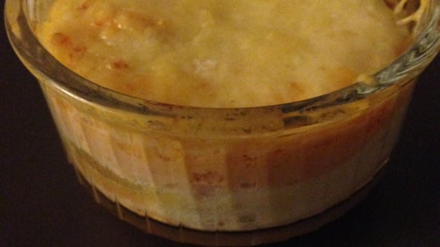 Déposez 1 c à s de ce mélange dans chaque ramequin et 1 c à s de dés de jambon.