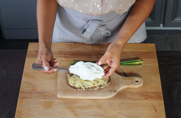 Posez 1 cuillère à soupe d’oignons sur les tranches de pain.