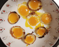 Dans un petit plat à gratin caler les brioches sur un lit de haricots secs.Enfourner 4 minutes.Couper 4 brioches en mouilletes.Sur 4 assiettes préchauffées, mettre en couronne 1 brioche en mouilettes, la brioche garnie de son chapeau au milieu et servir.
