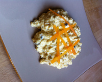 Grand classique de la gastronomie Française que cette recette d'œufs brouillés à la truffe ! Il vous faudra un peu de patience pour la réaliser mais surtout de bons produits qui feront toute la différence. La mimolette vieille posée en touche finale apportera un contraste de goût qui ne fera que sublimer celui de la truffe tout en égayant la couleur du plat.