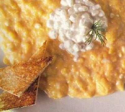 Lorsque la consistance devient crémeuse et que les oeufs sont cuits, ajouter le Cottage Cheese.