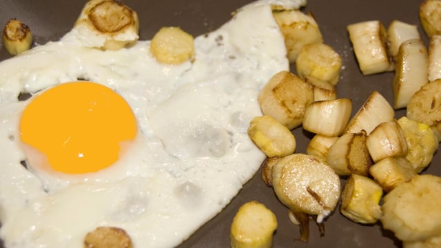 Les pousser sur un côté de la poêle pour laisser place à la cuisson des oeufs.