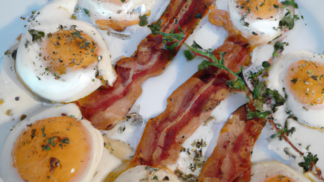 Oeufs aux lardons recouverts de gruyère et de thym.