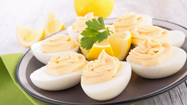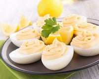 L'œuf mayonnaise est un grand classique de la cuisine familiale et de la cuisine de bistrot. On fait cuire des œufs durs, on les coupe en deux et on les nappe d’une mayonnaise maison. Une des variantes est l'œuf mimosa. Dans ce cas, on retire le jaune, on le passe au travers d’un tamis et on mélange avec de la mayonnaise. Les oeufs mimosa sont encore décorés avec un peu de ce jaune cuit qui, une fois passé au travers du tamis ressemble à du mimosa.