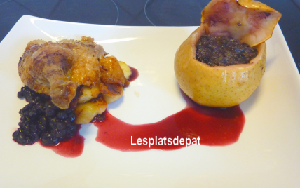 Mettre la farce foie/airelles dans les pommes et mettre à cuire à coté de l'oie 15 mn. - 4