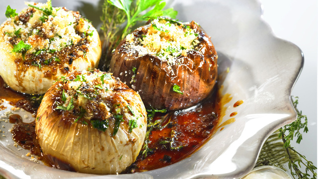 Au moment de servir dans les assiettes, nappez les oignons avec le fond de sauce.