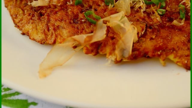 Une recette très populaire au Japon qui existe dans 2 versions : Osaka ou Hiroshima. C'est une crêpe épaisse à base de choux et condimenté avec des ingrédients pour lui donner un goût unique. Un plat solide !