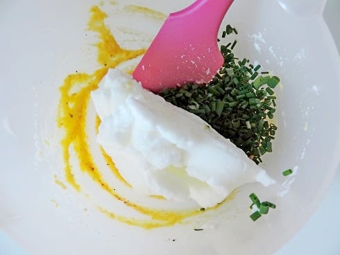 1Il s'agit de préparer une crème pâtissière mais pas sucrée! Dans un bol, mélanger les 2 jaunes d'oeufs avec la farine. Réserver. Dans un poêlon, faire chauffer le lait avec le beurre jusqu'à presque ébullition. Verser le lait sur les jaunes tout en mélangeant. Verser le mélange dans le poêlon et faire à nouveau bouillir à feu doux, tout en mélangeant. Stopper le feu dès ébullition. Battre les 4 blancs d'oeufs en neige jusqu'au bec d'oiseau. Incorporer les blancs d'oeufs petit à petit à la "crème". Ajouter la ciboulette ciselée.