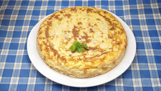 Mettre les pommes de terre dans la poêle, ajouter le jambon et verser dessus l'omelette.